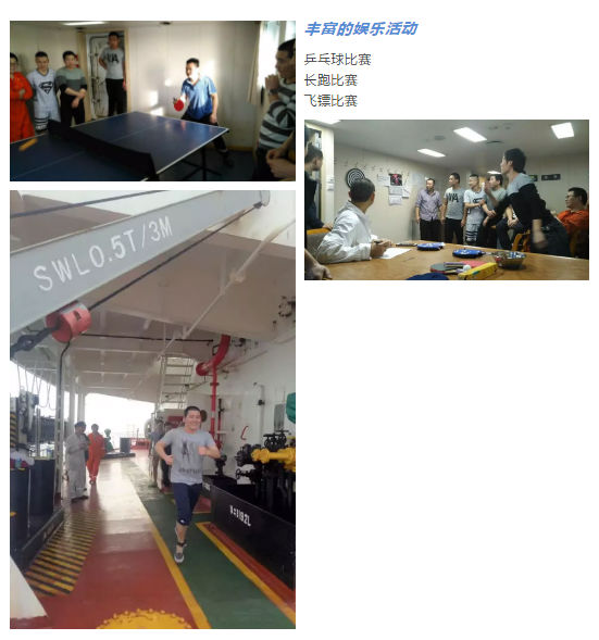 海上的生活有许多难忘的片段:全船人精心准备安装防盗网等各种防海盗设施,加入护航编队;大年三十那晚吃了丰盛的年夜饭;过年期间的飞镖比赛、乒乓球比赛、长跑比赛、象棋比赛等有趣的活动;大半夜突发机械故障,全体机舱人员无任何怨言迅速抢修...这是我们的义务和职责所在,累并快乐着。